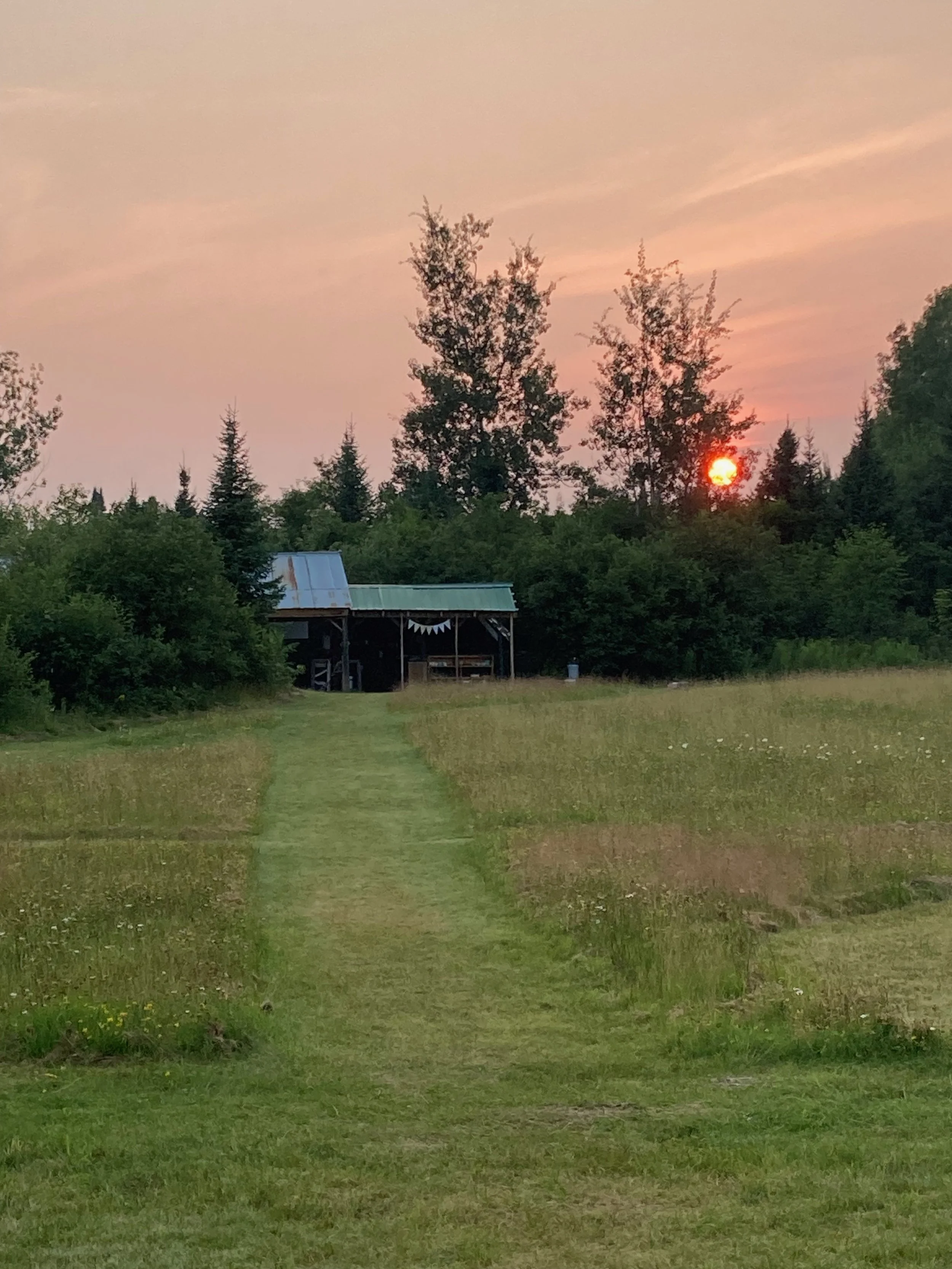 A view of camp at sunset